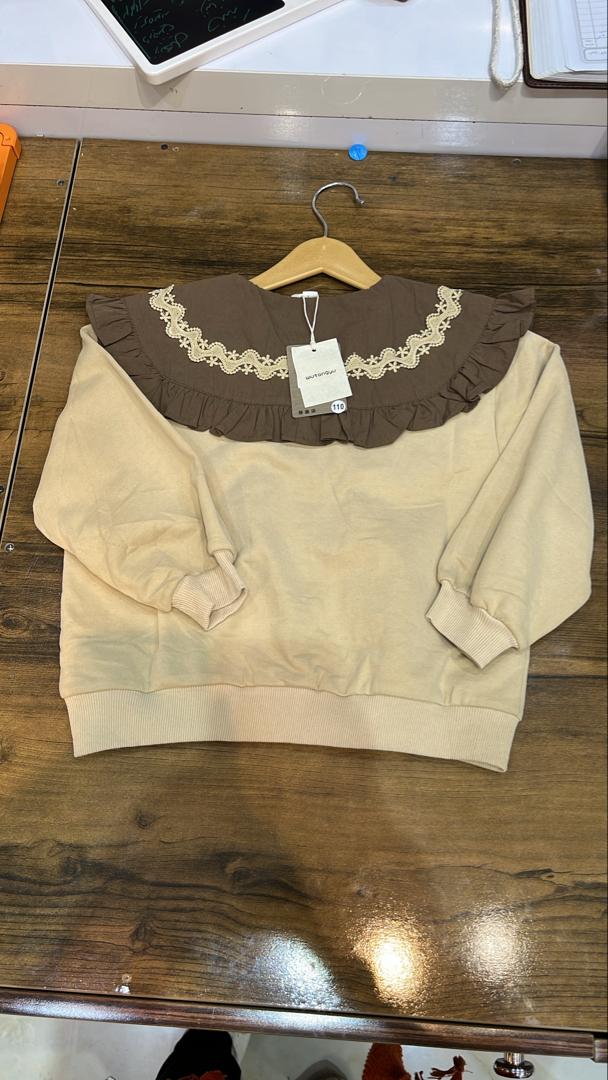 بلوز جلو باز دخترانه یقه مدل دار وارداتی موجود در دو رنگ کرم و شکلاتی مناسب برای سنین ۵ تا ۸ سال