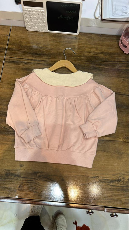 دورس جلو باز دخترانه پاییزه یقه طرح دار وارداتی موجود در رنگ صورتی مناسب برای ۴ تا ۸ سال