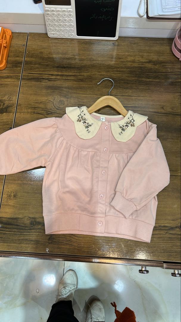 دورس جلو باز دخترانه پاییزه یقه طرح دار وارداتی موجود در رنگ صورتی مناسب برای ۴ تا ۸ سال